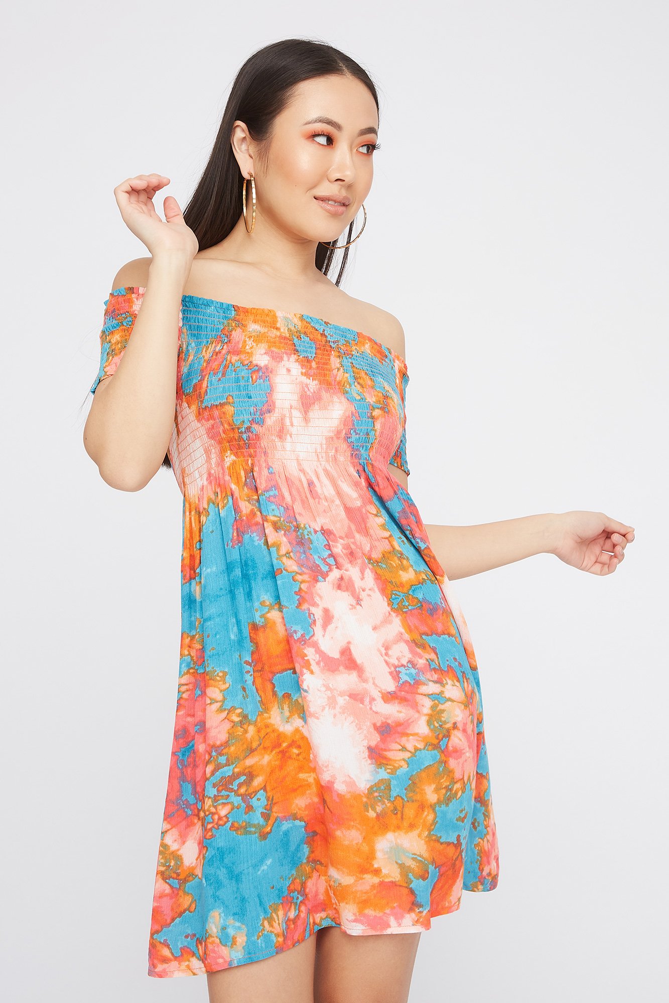 Urban Planet Women S Tie Dye Off The Shoulder Smocked Mini Dress Walmart Canada